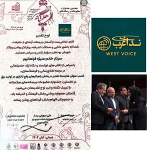 گفتنی است در یکی از بخش های ویژه جشنواره هگمتانه نیز منیژه فرهان پور مدیر مسئول پایگاه خبری ندای غرب از استان همدان شایسته تقدیر و کسب رتبه برتر در بخش راهکارهای رفع ناترازی در تولید برق شد و از دستان وزیر امور خارجه جمهوری اسلامی ایران لوح تقدیر و یادبودی را دریافت کرد.