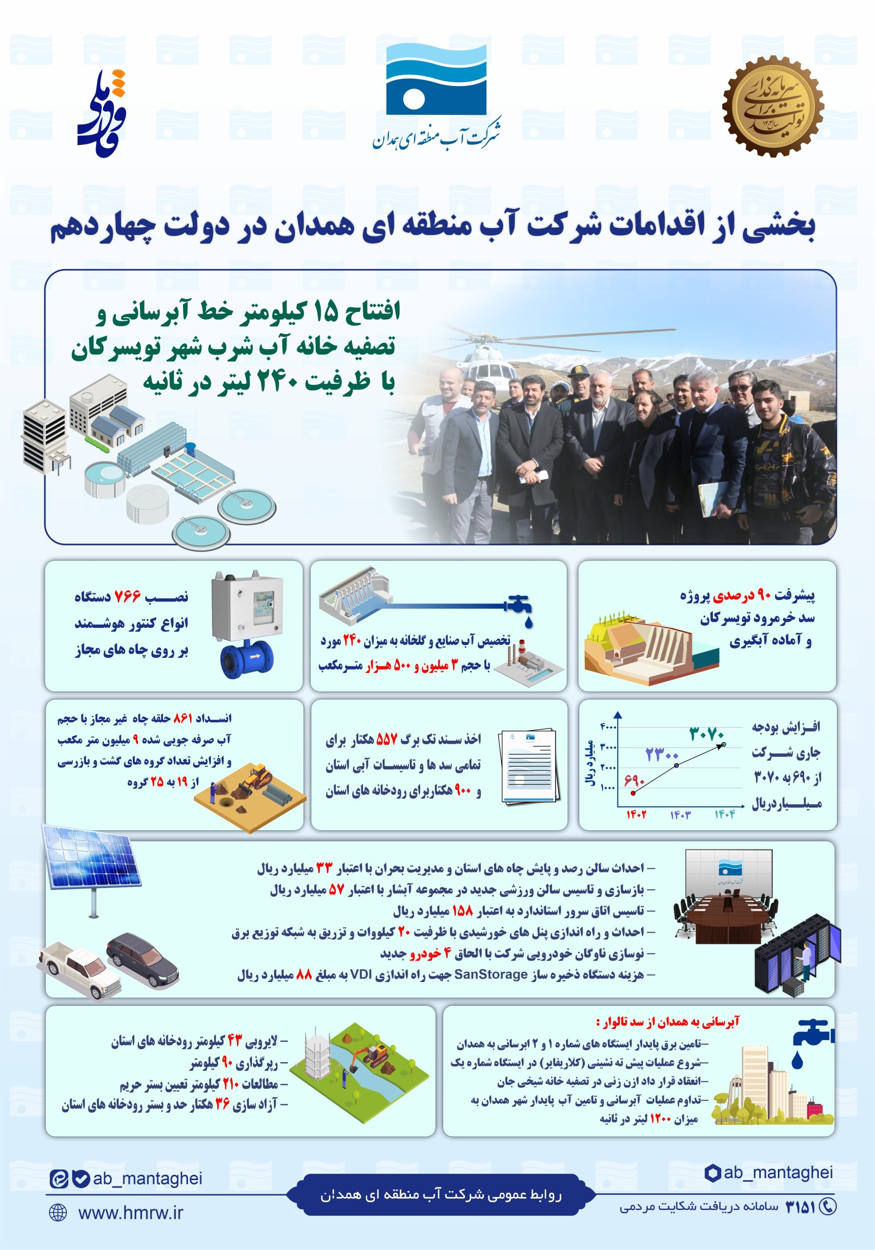 بخشی از اقدامات شرکت آب منطقه ای همدان در دولت چهاردهم