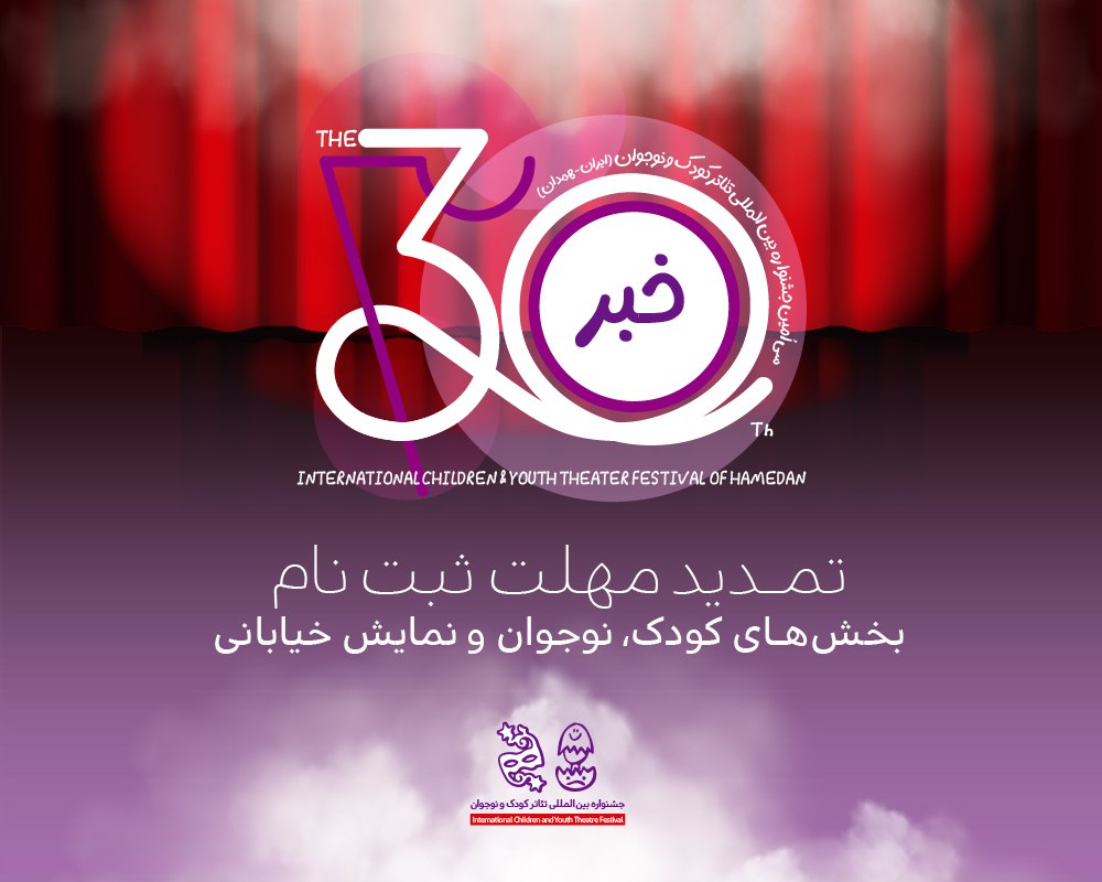 مهلت ثبتنام در سه بخش کودک، نوجوان و نمایشهای خیابانی سیاُمین جشنواره بینالمللی تئاتر کودک و نوجوان همدان تمدید شد.